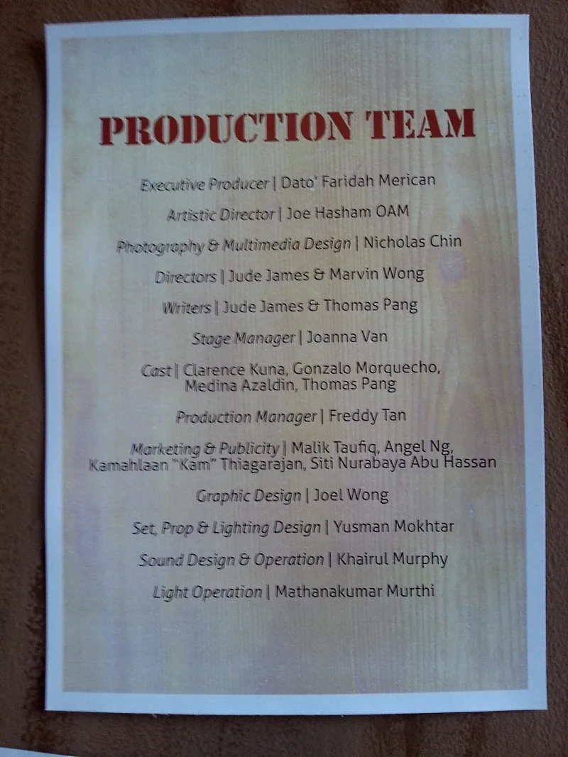 Venue: Indicine, The Kuala Lumpur Performing Arts Centre (KLPAC) Sentul Park, Jalan Strachan 51100 Kuala Lumpur
