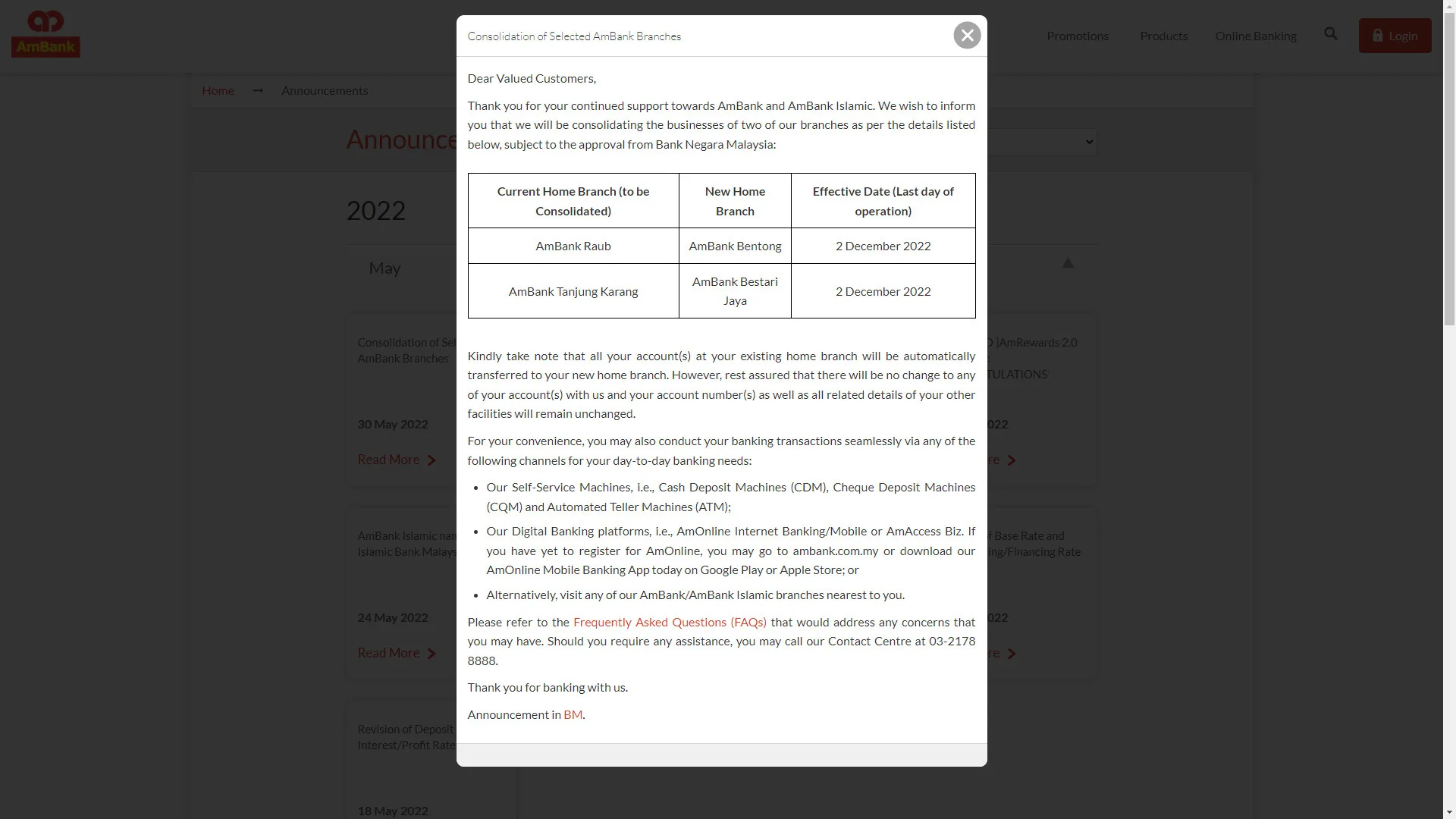 Previously, AmBank announced the consolidation to its Jasin and Kuala Kangsar branches on 28th March. Now, they’ve set their sights on AmBank Raub and AmBank Tanjung Karang.
