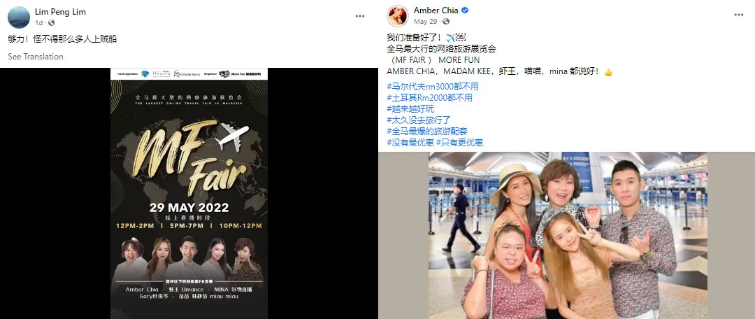 According to news reports, MF Travel has bailed on several customers, leaving them floundering and demanding for something to be done. However, they aren’t the only ones suffering. As it turns out, local artist Amber Chia (谢丽萍) who had endorsed the brand, was also shortchanged!