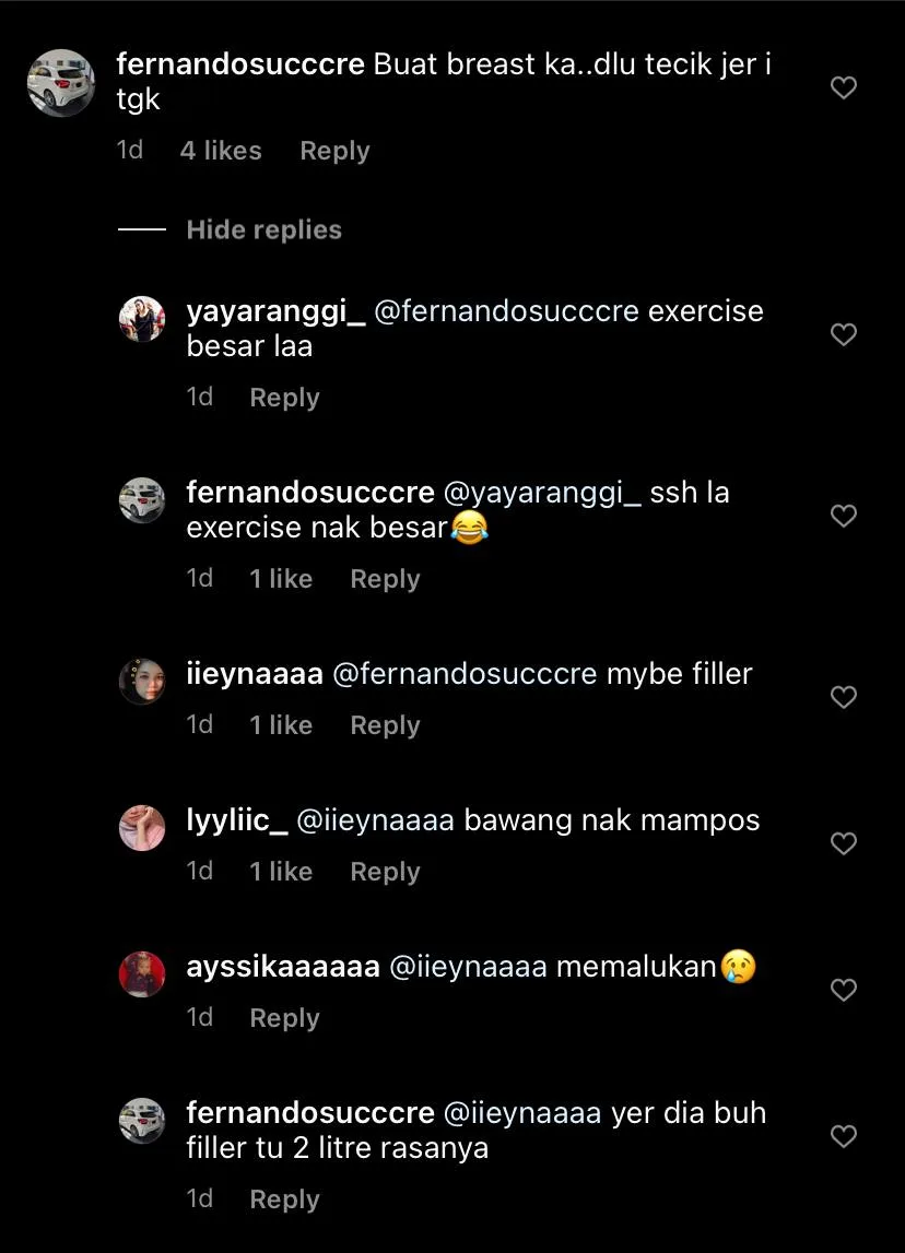 Not only that, there was also this one particular Instagram user, @fernandosucccre, who questioned whether the 21-year-old got a boob job recently! The netizen commented, “Did you just get a job done on your breasts? The last time I saw, they were still small.” That being said, the young influencer herself didn’t bother to reply to the social media user’s comment.