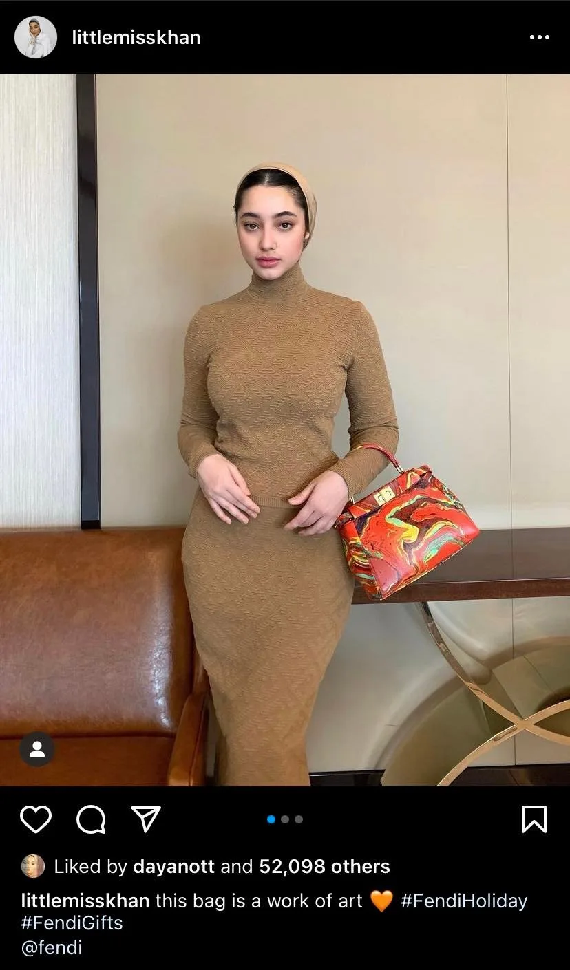 As reported by Murai, the younger sister to popular celebrity Neelofa recently uploaded a photo of herself donning a knitted bodycon dress. “This (Fendi) bag is a work of art,” she captioned her IG post.