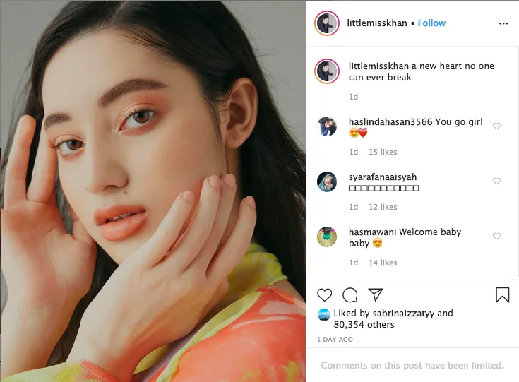 The younger sister of local celebrity Neelofa posted a series of photos on her Instagram over the weekend, after almost 6 months of silence from social media.