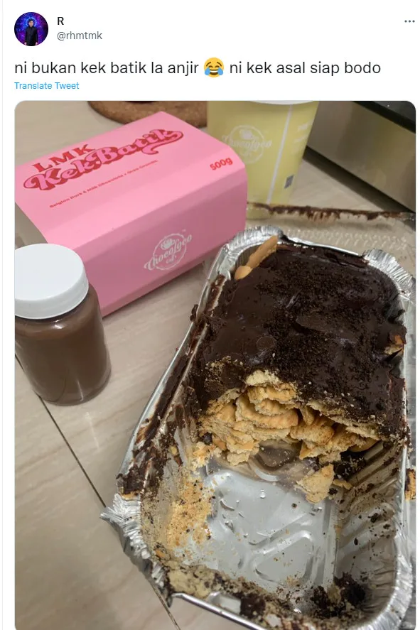 One netizen, known as rahmat mk, took to Twitter to vent his frustration after he purchased the batik cake. According to him, the batik cake that Ameera is selling is not the same as the other cakes that he had tried previously. Not only that, but the Twitter user also appeared to severely criticise the quality of the batik cake. The post had since gone viral, garnering over 2k retweets at the time of writing (Wednesday, 16th November).