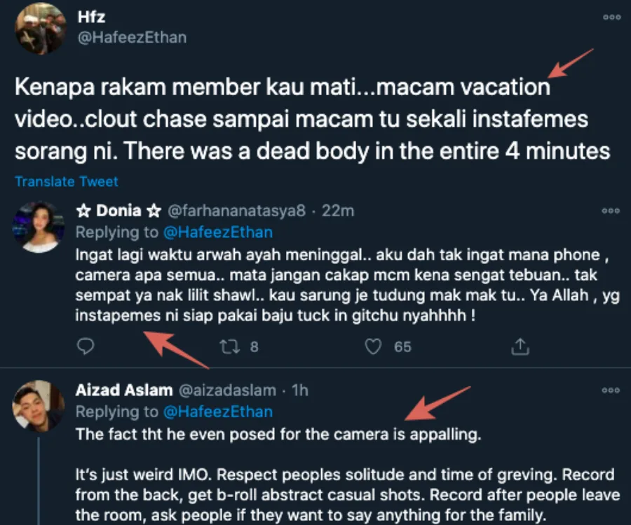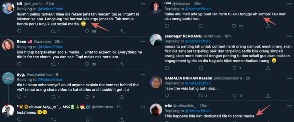 Hafiz’s pure intention, however, was met with quite a backlash from local netizens, with most of them arguing that his action of documenting the whole funeral process was deemed as rude and disrespectful. Apart from that, others also compared the tear-jerking clip to a vacation video!