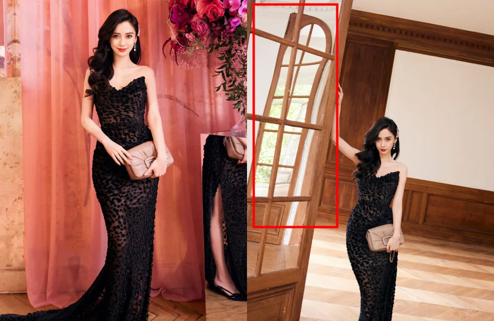 On 6th July, Angelababy’s studio released a set of photos showing the starlet at an event in Paris. As always, she was dressed to the nines, in a black mermaid dress, curled hair and bright red lipstick. Her visage impressed many, leading fans to compliment her. But, one photo in particular had them agitated.