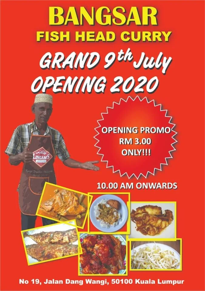 In conjunction with the grand opening of its new branch in Dang Wangi today (Thursday, 9th July), the famous Anuar Kari Kepala Ikan stall is offering a set meal with rice, a choice of chicken/fish curry and a side dish of fried bean sprouts for as low as RM3!