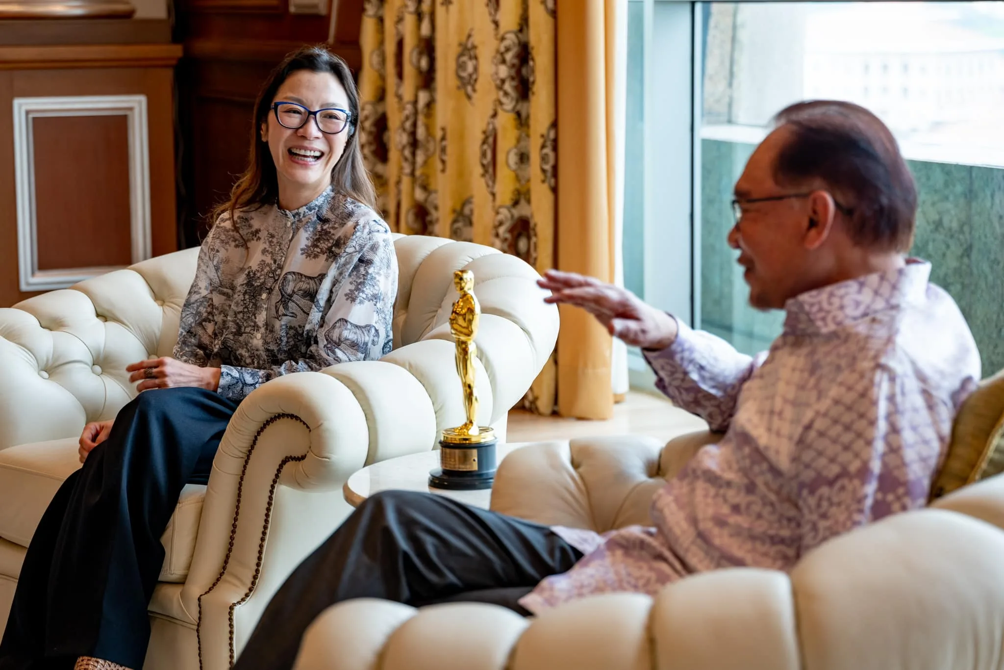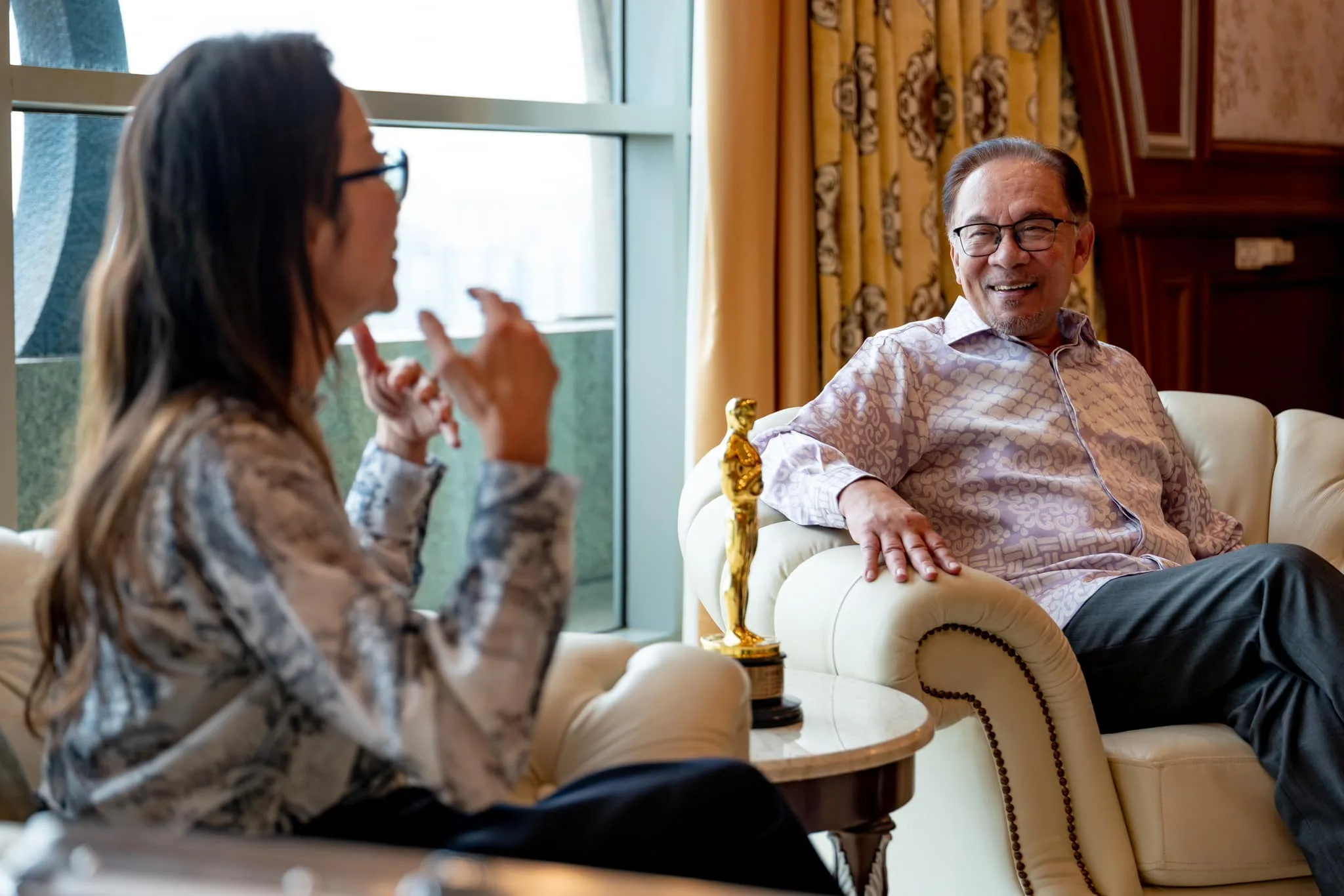 In the photos shared, both Michelle and Anwar were seen engaging in a light-hearted conversation. It’s impossible to miss the Oscar statuette that was placed on a round small table in between them. The Malaysian PM added that Michelle’s outstanding achievements had uplifted our country’s name on the international stage and wishes her continued success.
