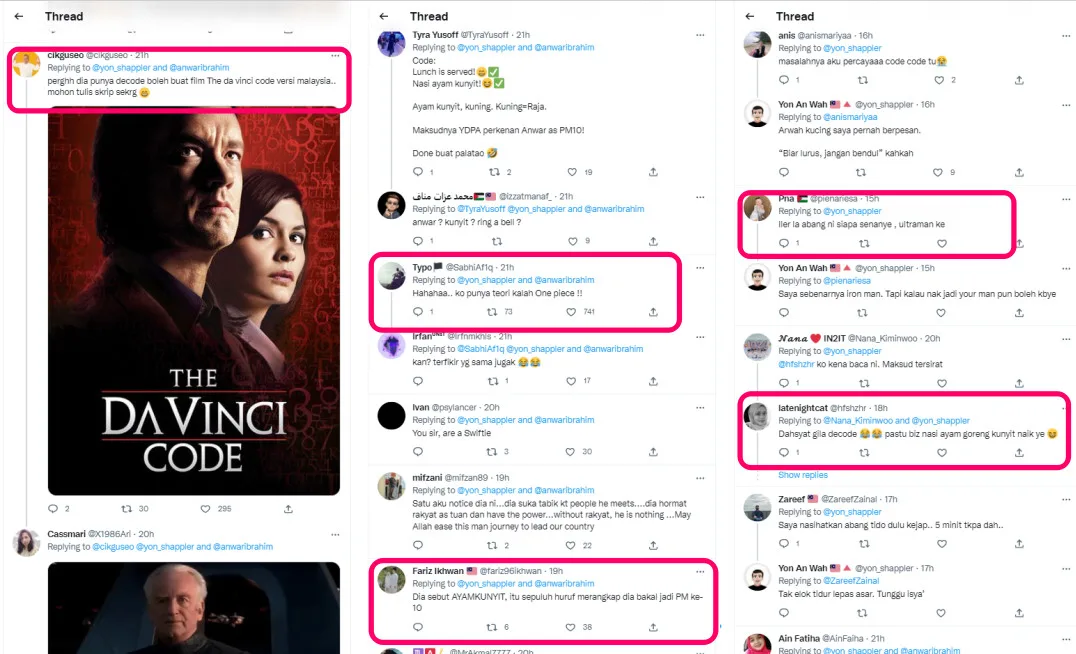 The comments section on the Twitter user’s post has been flooded with numerous comments from netizens. Most of them were greatly amused by his effort. Some even compared the theories presented by Yon an Wah to fictional works such as “The Da Vinci Code” and “One Piece”, among others.