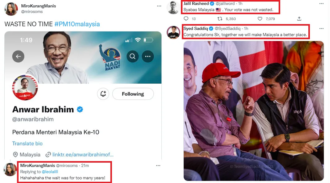 Others have been offering congratulatory messages to Dato’ Seri Anwar Ibrahim. This includes politician Syed Saddiq. “Congratulations, sir,” the MUDA leader wrote. “Together we will make Malaysia a better place.” CEO of Tony Blair Institute, Jalil Rasheed congratulated Malaysians. “Your vote was not wasted,” he stated.