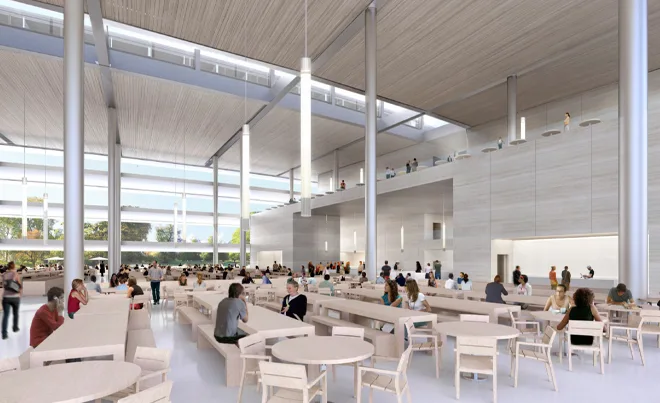 The tech giant is in the midst of building a new corporate HQ befitting of their success in the industry. The Norman Foster-designed Campus 2 (commonly referred to as “The Spaceship” due to its distinctive circular design and overall futuristic qualities) will add 2,800,000 square feet of office space to the company’s Cupertino, California operations, and it will hold more than 12,000 employees.