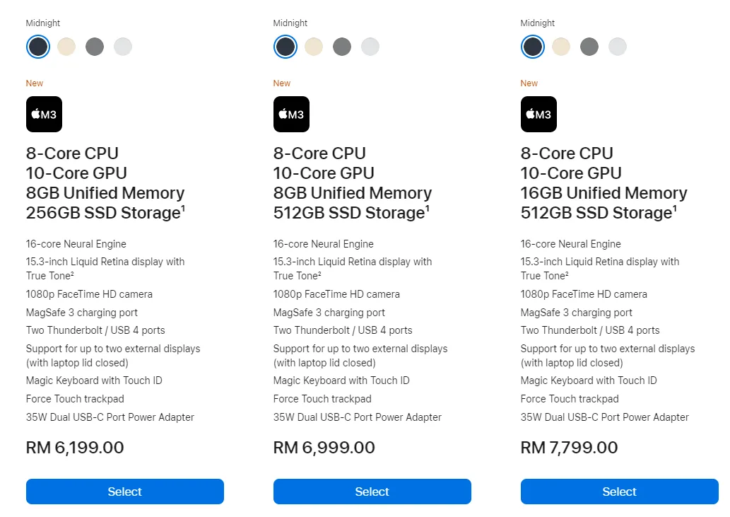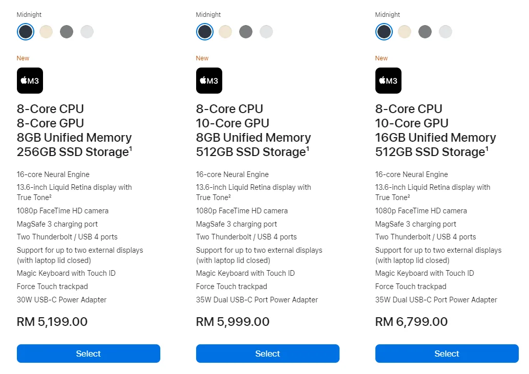 Both variants are available in 4 colours which are midnight, starlight, silver, and space grey. Of course, there’s more to be said about what these bad boys can do with the new M3 chips like improved gaming and Excel sheet performances and faster video editing processing but we’ll leave that for you to try out for yourself.
