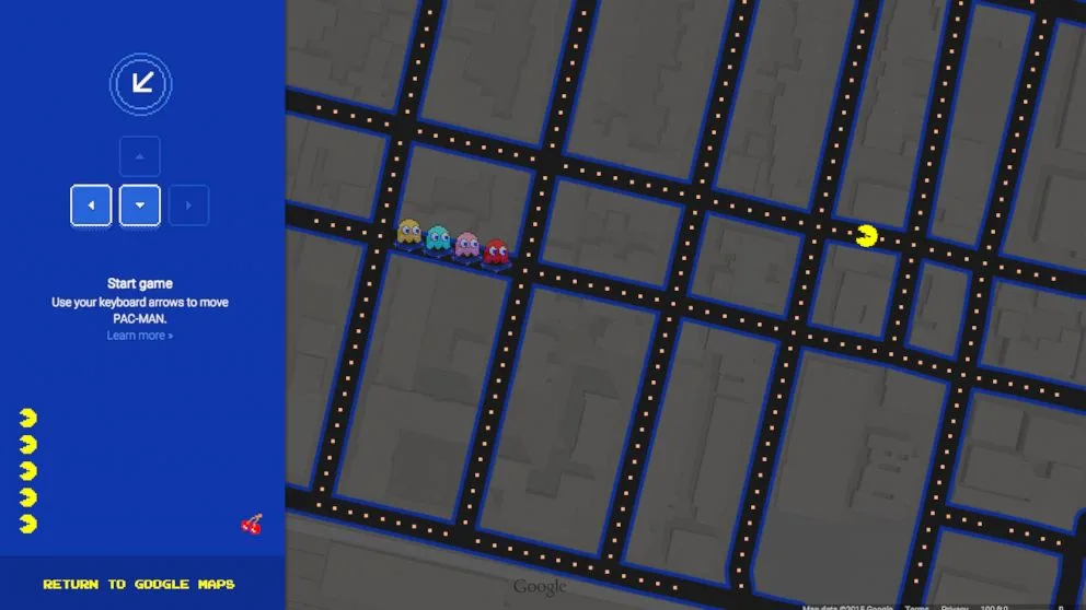 From there, click the Pac-Man button in the bottom left corner, and Google will transform those streets into a playable version of Pac-Man.