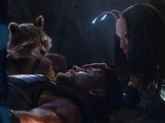 Things aren’t looking good for Thor at the new look of the Guardians and an Avengers together. As you can see, the unconscious God of Thunder is surrounded by Mantis and Rocket Raccoon, looking rather worried. Based on what we’ve seen in the epic trailer, it’s likely that they’re onboard the Milano.