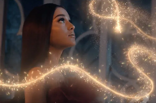 The scene starts off with Grande gazing into an enchanted mirror (perhaps searching for Legend). By taking on the living embodiment of the film’s significant flower, the 23-year-old songbird finds herself being surrounded by dancing petals that make up an enchanted rose.