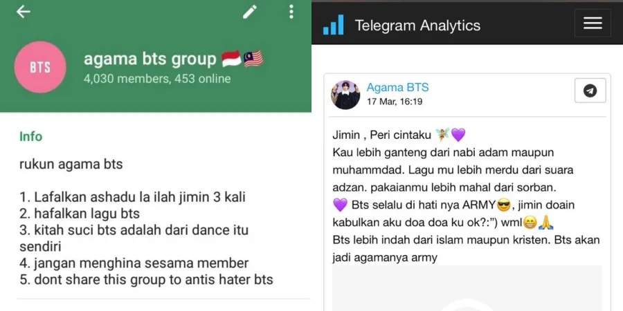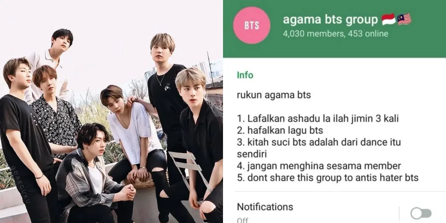 The internet went nuts over the past few days regarding the existence of a Telegram group chat under the name “Agama BTS” (BTS Religion) allegedly “founded” by hardcore fans of the 7-member boy group – widely known as ARMYs.