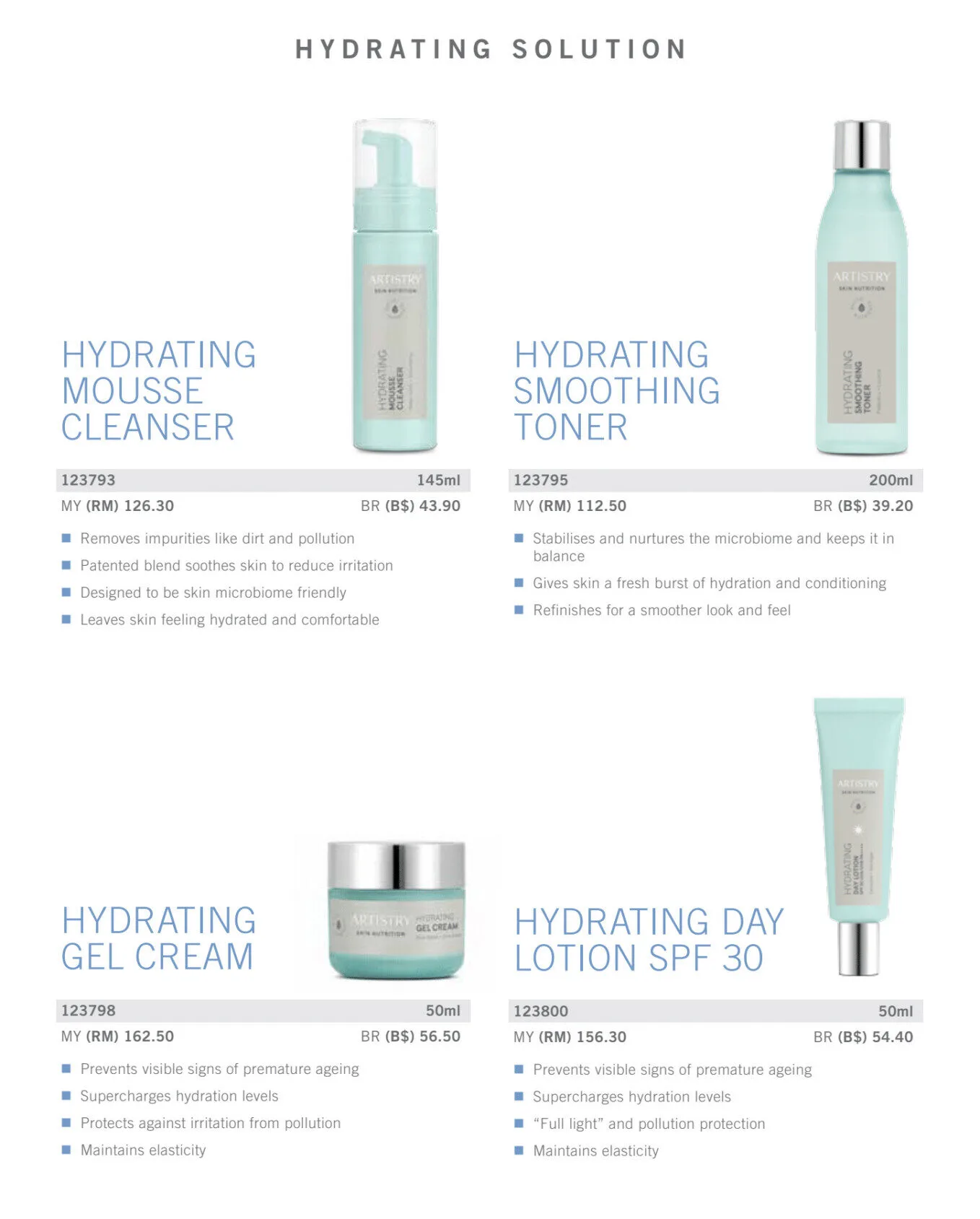 In order for the skin to look its healthiest, the 5 key Skin Nutritional Requirements rely on Balancing Solution and Hydrating Solution to purify, balance, rebuild, moisturise and protect the skin.
