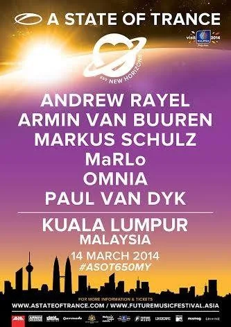 Heads up trance music fans! Good news comes your way as Armin Van Buuren announced the acts that will be sharing the stage with him at Future Music Festival Asia 2014 presents ‘A State of Trance 650 Kuala Lumpur: New Horizons’ on March 14th, 2014 (Friday).