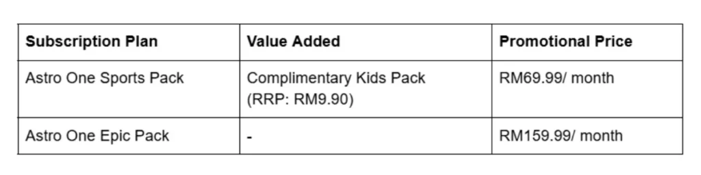 This exclusive promotion is available to new customers signing up for the Astro One Sports Pack or Astro One Epic Pack, as well as existing customers who wish to upgrade their current packs. With flexible options available, customers can easily tailor their entertainment to match their evolving viewing needs.