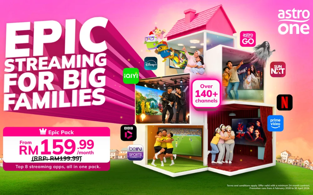For those who want a complete entertainment experience, the Astro One Epic Pack is available at a special promotional price of RM159.99 per month (RRP: RM199.99). This pack brings together premium movies, series, sports and kids’ content plus access to eight popular streaming apps — including Netflix, Disney+, Prime Video, iQIYI, beIN Sports and more — all on one platform. With everything in one place, customers can enjoy a seamless experience, moving easily between live TV channels and their favourite streaming apps without switching devices or juggling multiple subscriptions. It’s a simpler, richer and more convenient way for families to enjoy entertainment every day.
