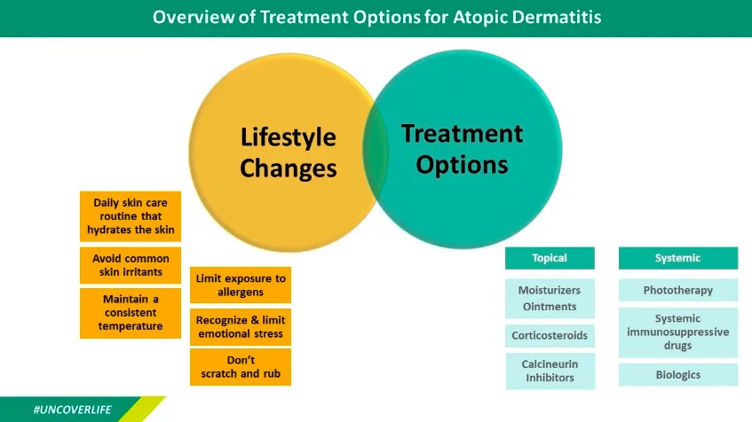 Fact 6: AD is different for everyone, so treatment needs to be personalised, and it is also important to continue treatment for the long-term. Often topical treatments are enough for mild AD. Those with severe AD may need to undergo advanced treatments like phototherapy, steroid/oral medications, or biologics therapy. While topical treatments can be relatively inexpensive, over time these costs can add up significantly, especially for advanced therapies.