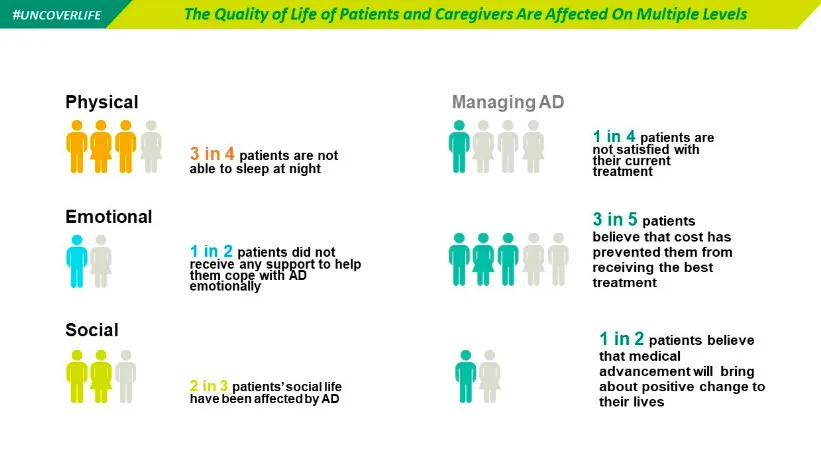 Fact 3: AD may only be visible on the skin, but it’s stressful mentally too. Many patients suffer from sleepless nights as well as feeling insecure, lonely or depressed, as people tend to stay away from those with AD.