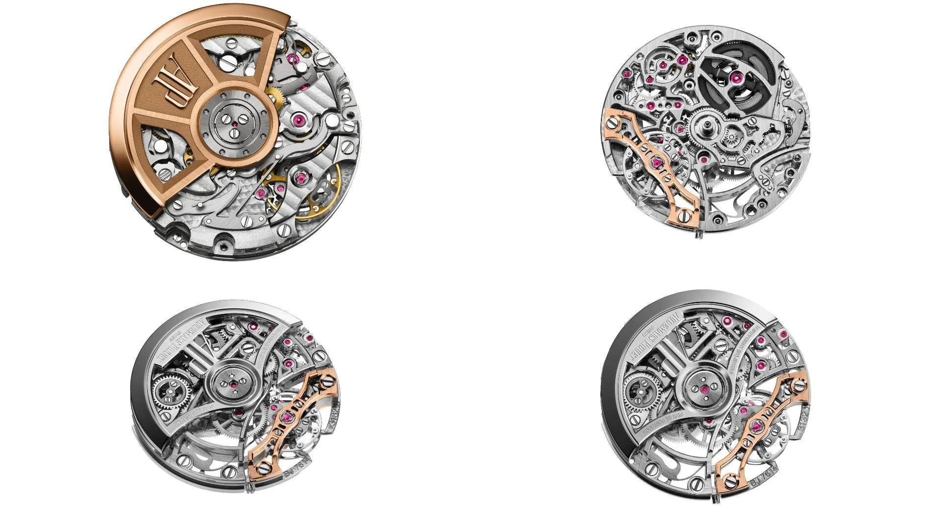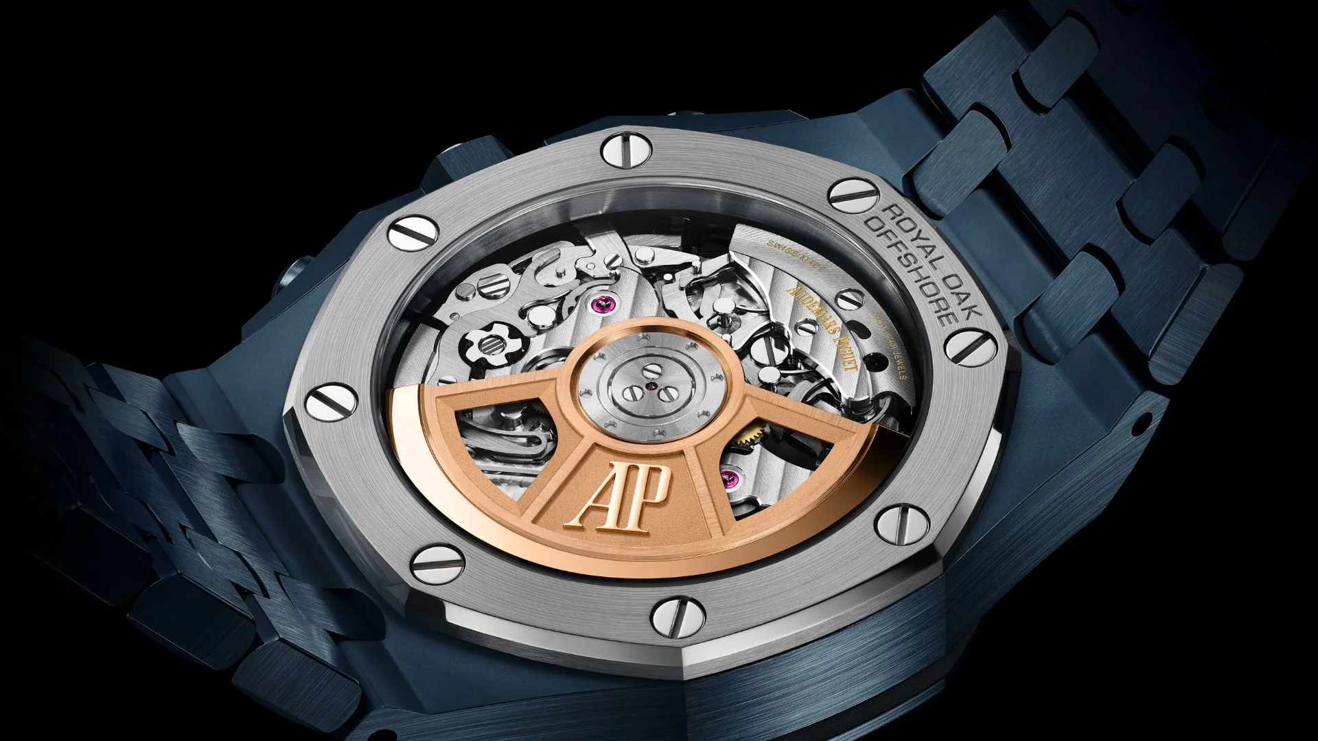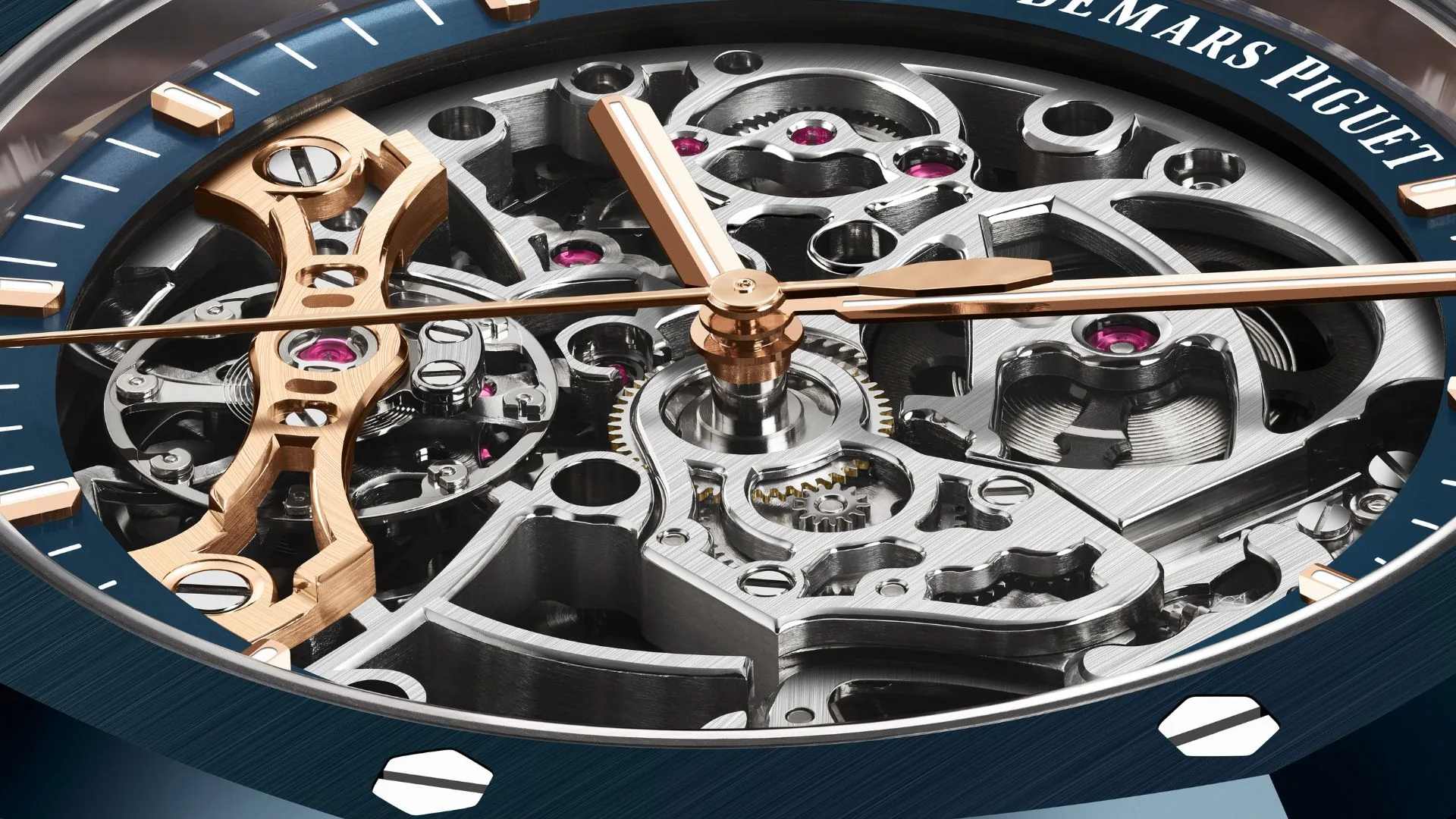 By incorporating two balance wheels and two hairsprings assembled on the same axis, the system oscillates in perfect synchrony. Visible from both the dial and the caseback, the mechanism offers a privileged view of the watch’s beating heart, while the openworked bridges reveal some components of the gear train. Blending modern technologies, such as CNC (computer numerical control) machining, and manual craftsmanship including polished V-angles, this timepiece epitomises Audemars Piguet’s uncompromising spirit.