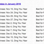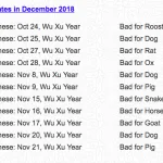 - 1st December (Saturday) – Not advisable for those born under the Rooster Chinese zodiac.