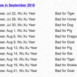 - 15th September (Saturday) – Not advisable for those born under the Dragon Chinese zodiac.