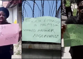 Nigerians have stepped out to protest at the embassy in Malaysia after a Nigerian business man who is taking his...