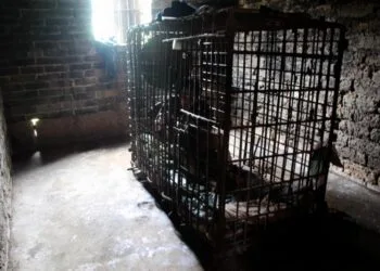 A 42-year-old mentally ill Chinese man has been kept in a cage for more than a decade by his family...