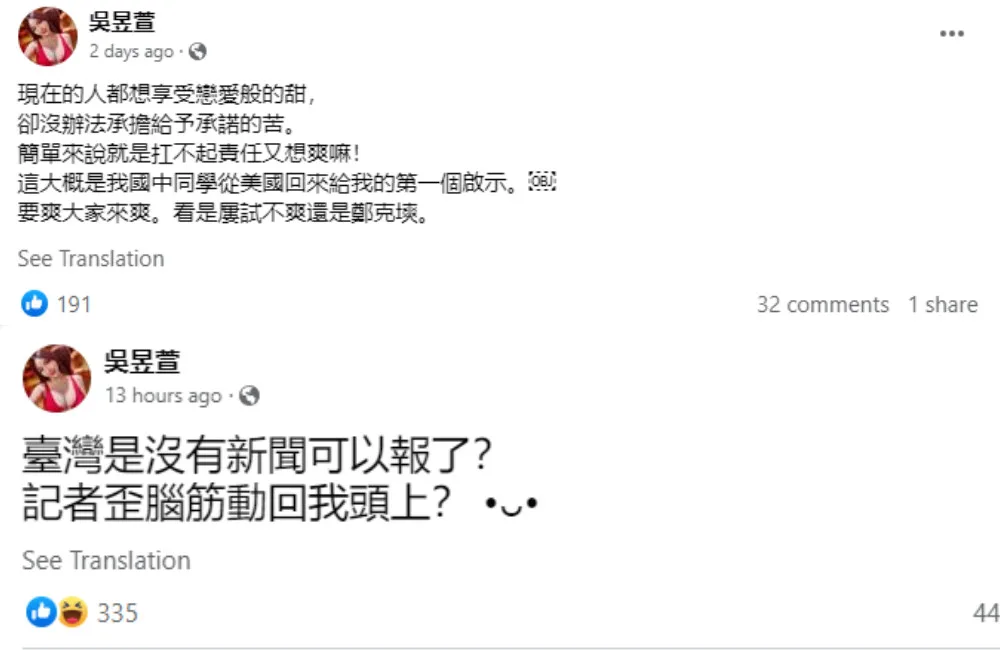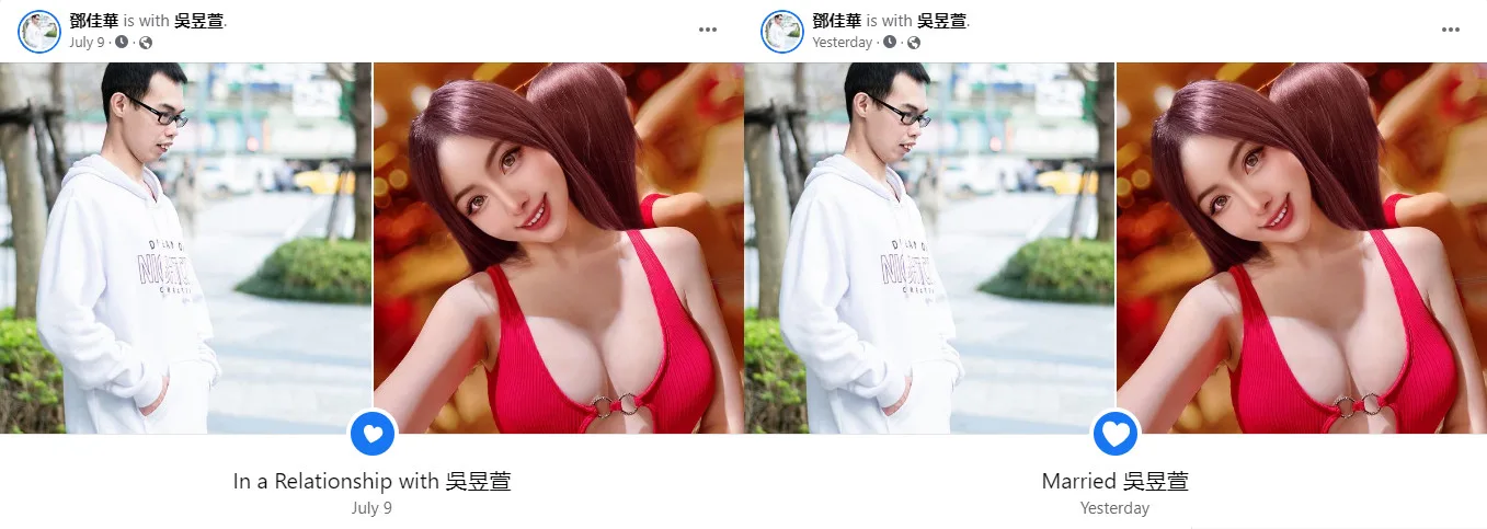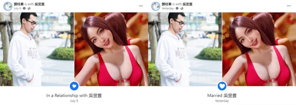 A day later (10th July), Deng Jia Hua’s status had changed to “married Wu Yuxuan“. Netizens were quick to voice their doubts, and it seems they had a reason to be wary. Although Wu Yuxuan did not blatantly mention the status change, she did say this on her Facebook: “Is there no (other) news in Taiwan to report? The reporters are (turning) back to me (for news)?”