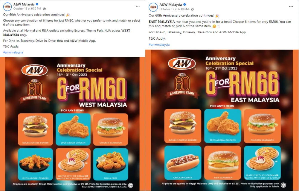 A&W is also offering another promo where you can get six items for only RM60. With this promotion, you can choose any combination of six ala carte items from their menu for only RM60. You can also select six of the same items, and that will also be RM60. This promotion is also available for folks in East Malaysia for RM66 instead. You can enjoy this promotion at all A&W outlets, excluding express, theme park and airport outlets.