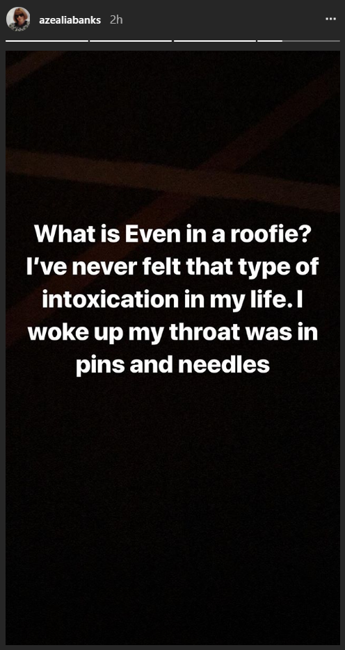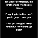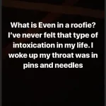 However, in her latest Instastory, she alleged that she was roofied. She said, “What is even in a roofie? I’ve never felt that type of intoxication in my life. I woke up my throat was in pins and needles.”
