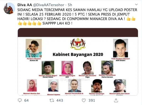 Enraged with everyone making fun of him online, Azwan took to Twitter to point out his disappointment. It’s revealed that he will take action against the internet troll in a press conference today (Tuesday, 25th February). “A media conference will be held on the lawsuit case against this clown who uploaded this poster. All are invited to attend,” he wrote.