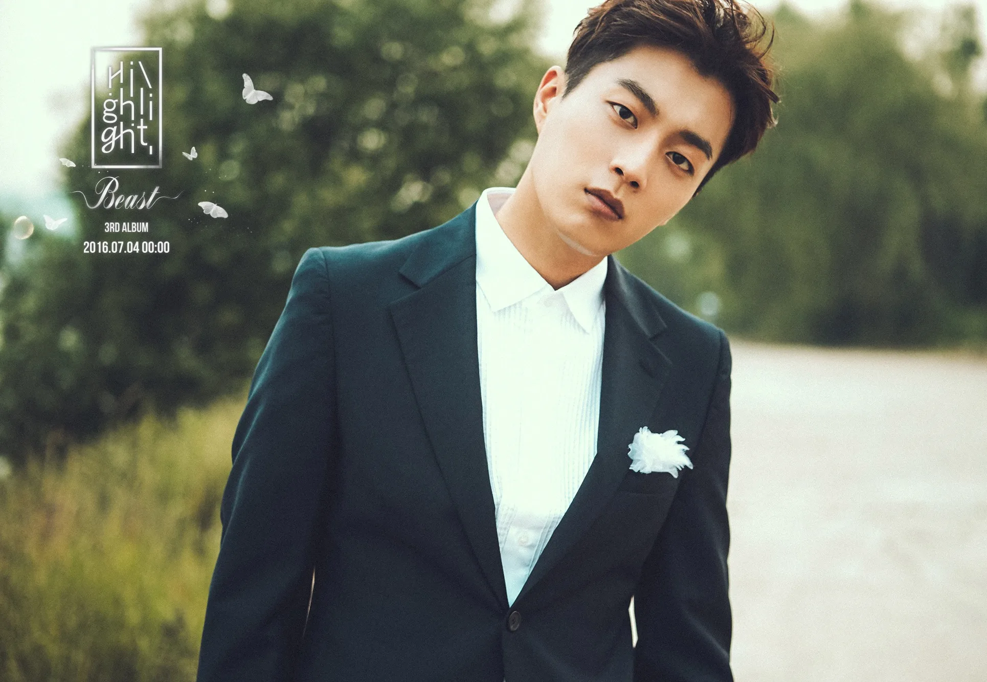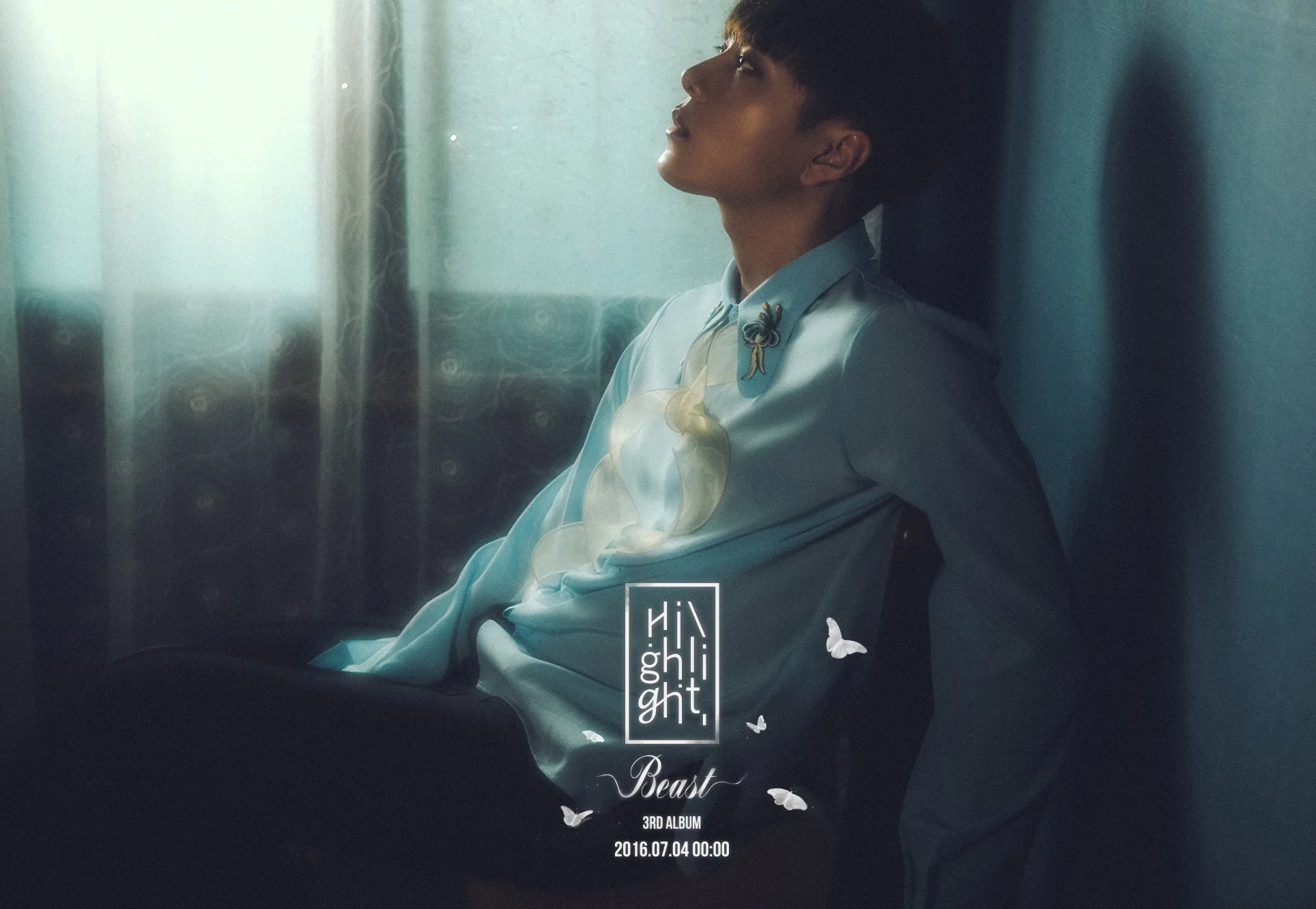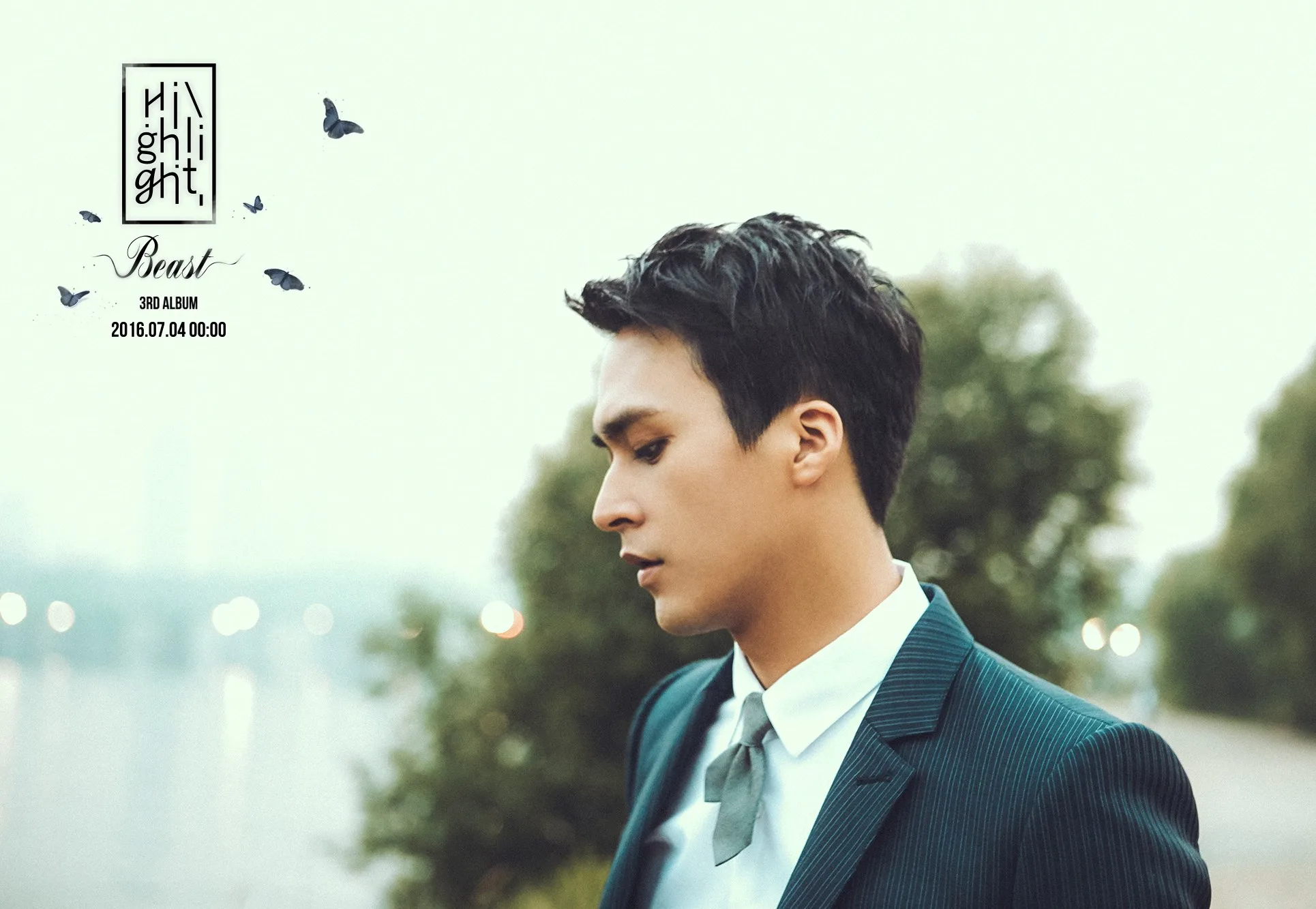 The photos show the members of the idol group dressed up smartly in suits, with the “Highlight” logo surrounded by 5 butterflies plastered to the images. The teasers also reminded us of the “Butterfly” music video, as the singers wore similar outfits and are placed in an identical setting.
