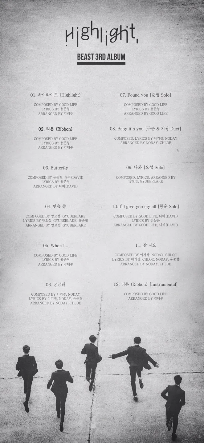The track list for “Highlight” was revealed, and it contains a total of 12 songs. Most of the songs were composed and written by member Junhyung.