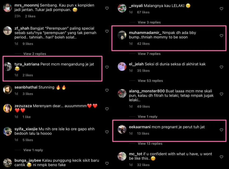 As expected, many of them took to the comments section to put the entrepreneur on blast. On top of that, there were also a few who were more focused on the “bump” on Sajat’s tummy. As a result, many netizens assumed that the “Makhluk Penggoda” singer is currently carrying a bun in the oven!