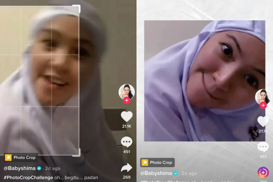 For those curious, the social media user – using the moniker @happy_happy – popped the question, “What’s the point of you praying if you keep showing off your body?” after Shima posted a clip of herself doing the #PhotoCropChallenge wearing a telekung (women’s prayer garment) on her page.