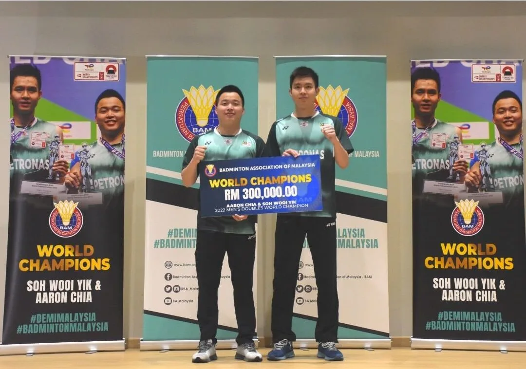 Malaysian men’s doubles players, Aaron Chia (谢定峰) and Soh Wooi Yik (苏伟译), have recently been rewarded with incentives totaling up to RM500k! The smashing news came just a few weeks following the badminton duo’s historic world title win.