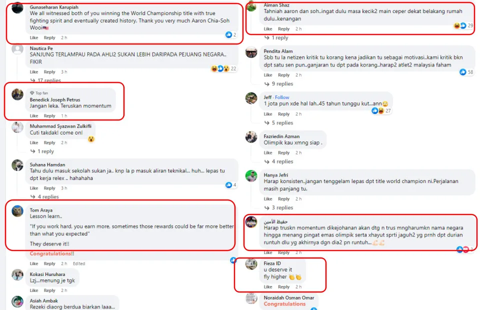 The news was met with mostly positive responses from badminton fans on social media. “We all witnessed both of you winning the World Championship title with true fighting spirit and eventually created history. Thank you very much Aaron Chia-Soh Wooi Yik,” FB user Gunasheran Karupiah wrote. “If you work hard, you earn more, sometimes those rewards could be far more better than what you expected. They deserve it!!” Tom Araya added.