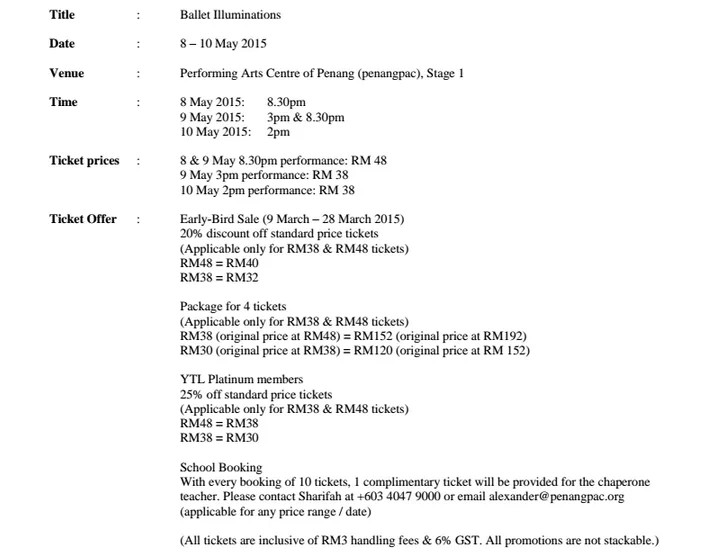 Tickets can be purchased via TicketPro or call or walk-in: penangpac @ Straits Quay (+604 899 1722/ 2722).