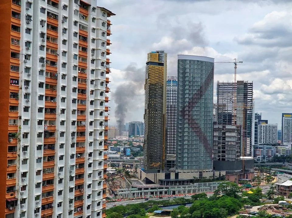 “It looks like it’s coming from the area opposite Media Prima. As far as I know, the area opposite is where some construction workers are staying. When I came out, the fire trucks were already here,” our source said.