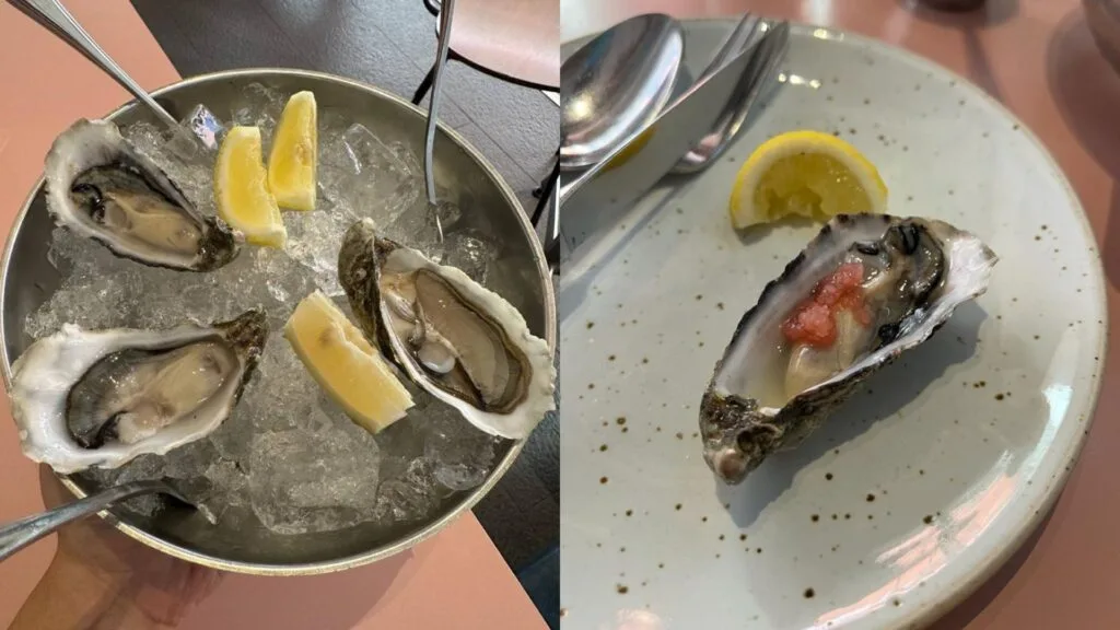 A must-try if you visit this restaurant is their oysters. We heard they have pretty good and fresh oysters – and of course, we had to try them. We went with 1/2 dozen, which were served on beds of ice, lemon slices and their special sauce, which was white wine, garlic and cream. The oysters were really fresh. Adding the lemon juice and special sauce really elevated our oyster experience. They were delicious!