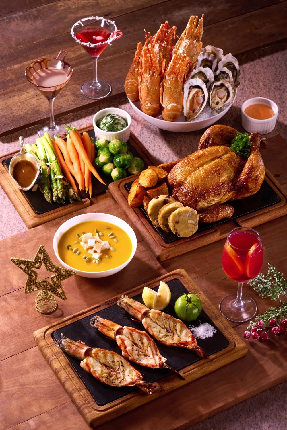 Arthur’s joyous holiday menu features timeless classics, a live carving trolley, and a selection of handcrafted cocktails. The holiday spread boasts a scrumptious selection of favourites, including the hearty Christmas roast chicken, oven-roasted Australian leg of lamb, beef Wellington, an assortment of hot and cold seafood, and divine holiday desserts on 24th and 25th December for a Celebration Feast, at RM258 nett per person.