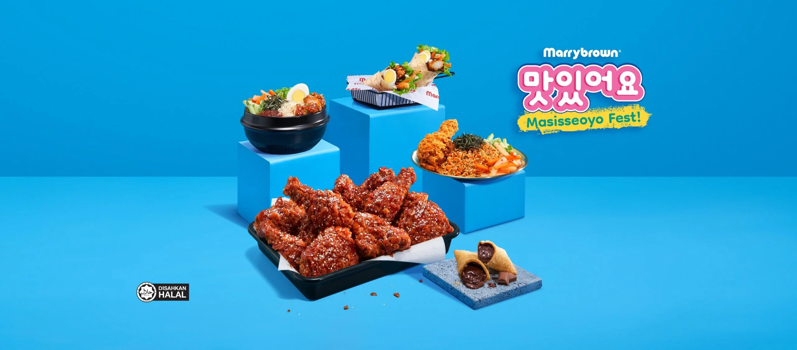 Marrybrown, the largest Halal Malaysian-born Quick Service Restaurant, invites Malaysians on a sensory feast this festive season with the launch of Masisseoyo Fest, the latest Korean-inspired menu available across all of Malaysia from now until 21st January 2024! By infusing their menu with with the perfect blend of spice and sweetness from chilli pepper and chilli flakes, Marrybrown’s Masisseoyo Fest introduces a fiery line up with their Fire Ramyeon, Spicy Bibimbap, K-Chicken Wrap, Masisseoyo Chicken and Chocolate Pie.