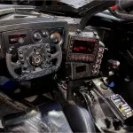 Reminiscent of a modern military tank, the inside of the car is adorned with a sleek dashboard and gadgets.