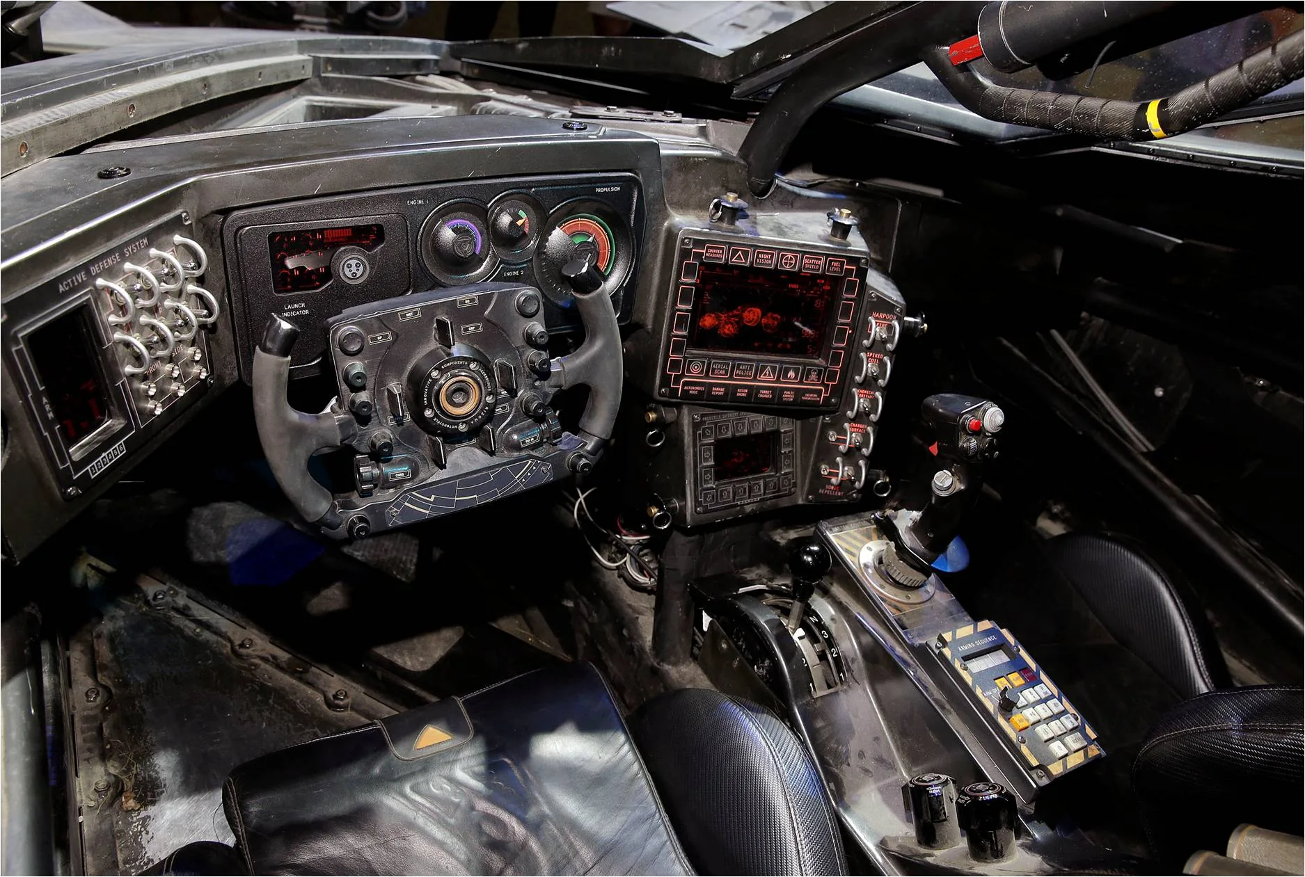Reminiscent of a modern military tank, the inside of the car is adorned with a sleek dashboard and gadgets.