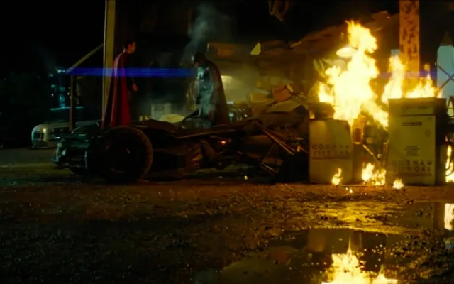 Batman stepped out of his Batmobile after Superman ripped the doors clean off the car. The latter then threatened the Cape Crusader by saying: