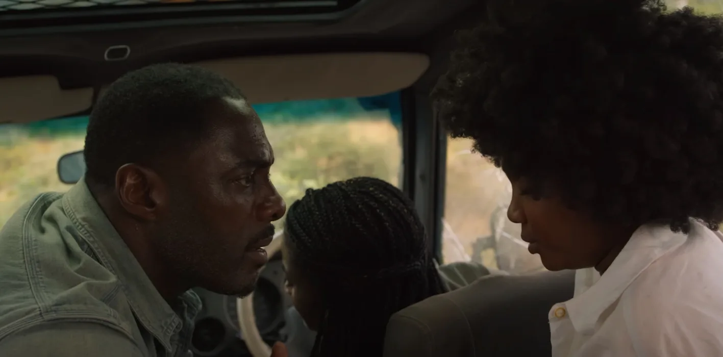 The film follows the story of a doctor named Nate Samuels who takes his two daughters to the wild plains of South Africa in an effort to reconnect with them. Ah yes, the classic tactic of putting your children in mortal danger to bond with them through the joys of collective trauma! He’s joined by an old friend with a lot of history. A daredevil wildlife conservationist named Martin Battles played by Sharlto Copley. It’s clear that the family dynamic between Nate and his two daughters are meant to be an emotional core of the film. We came into the film expecting them to serve as the familial trophy that actor Idris Elba’s character must win through bloody, jungle struggle. Turns out, we were wrong.