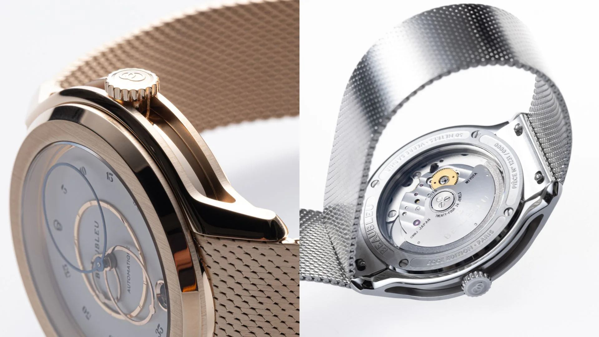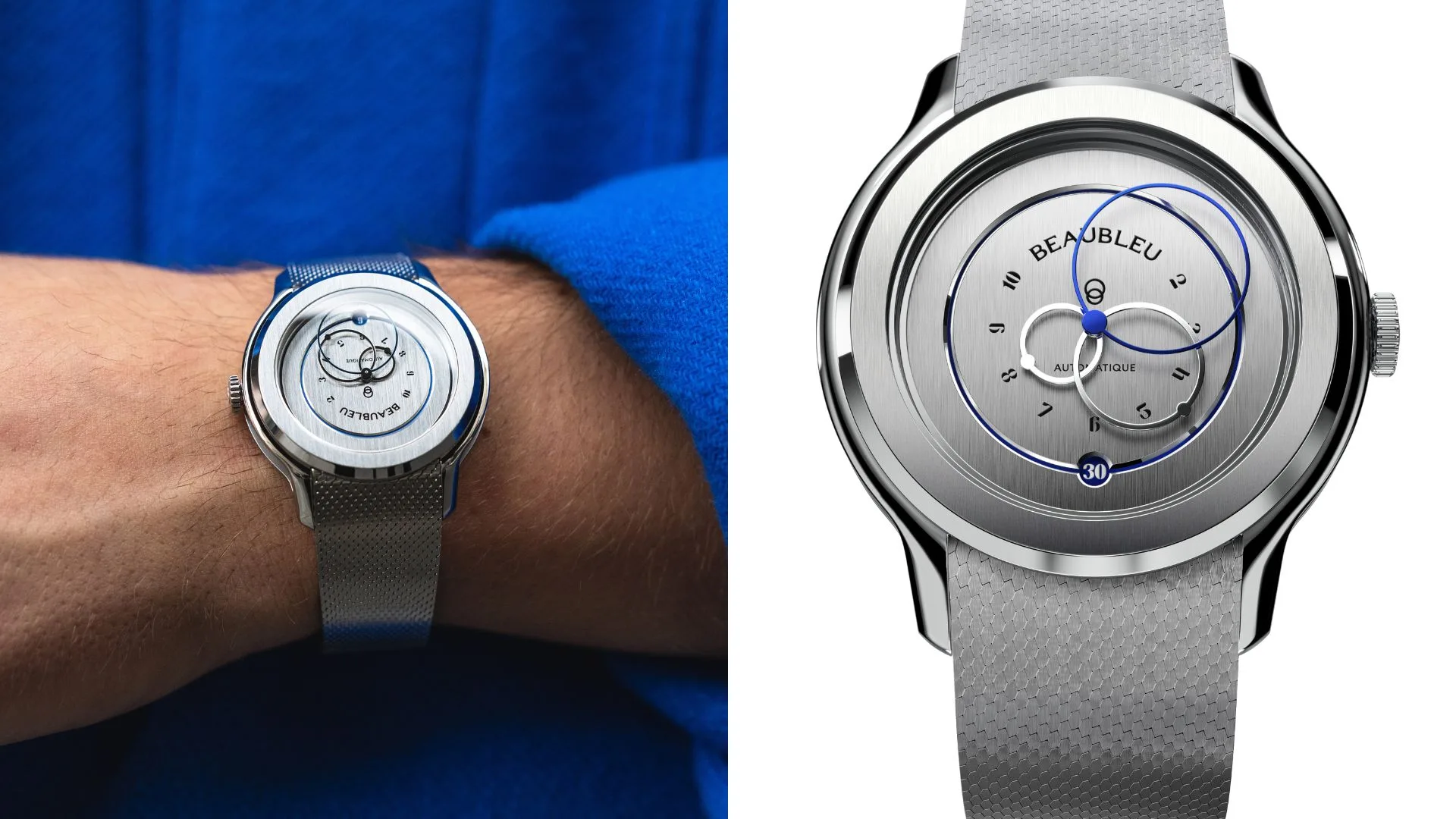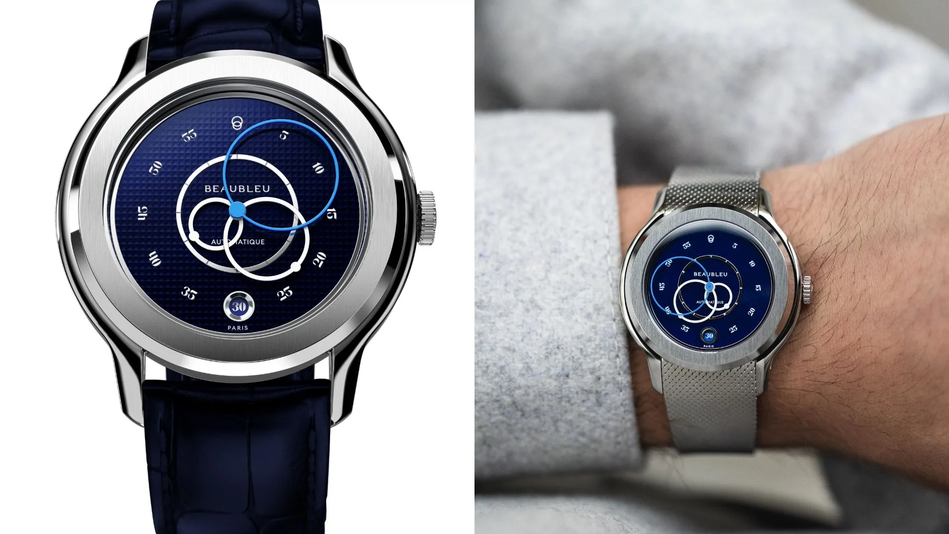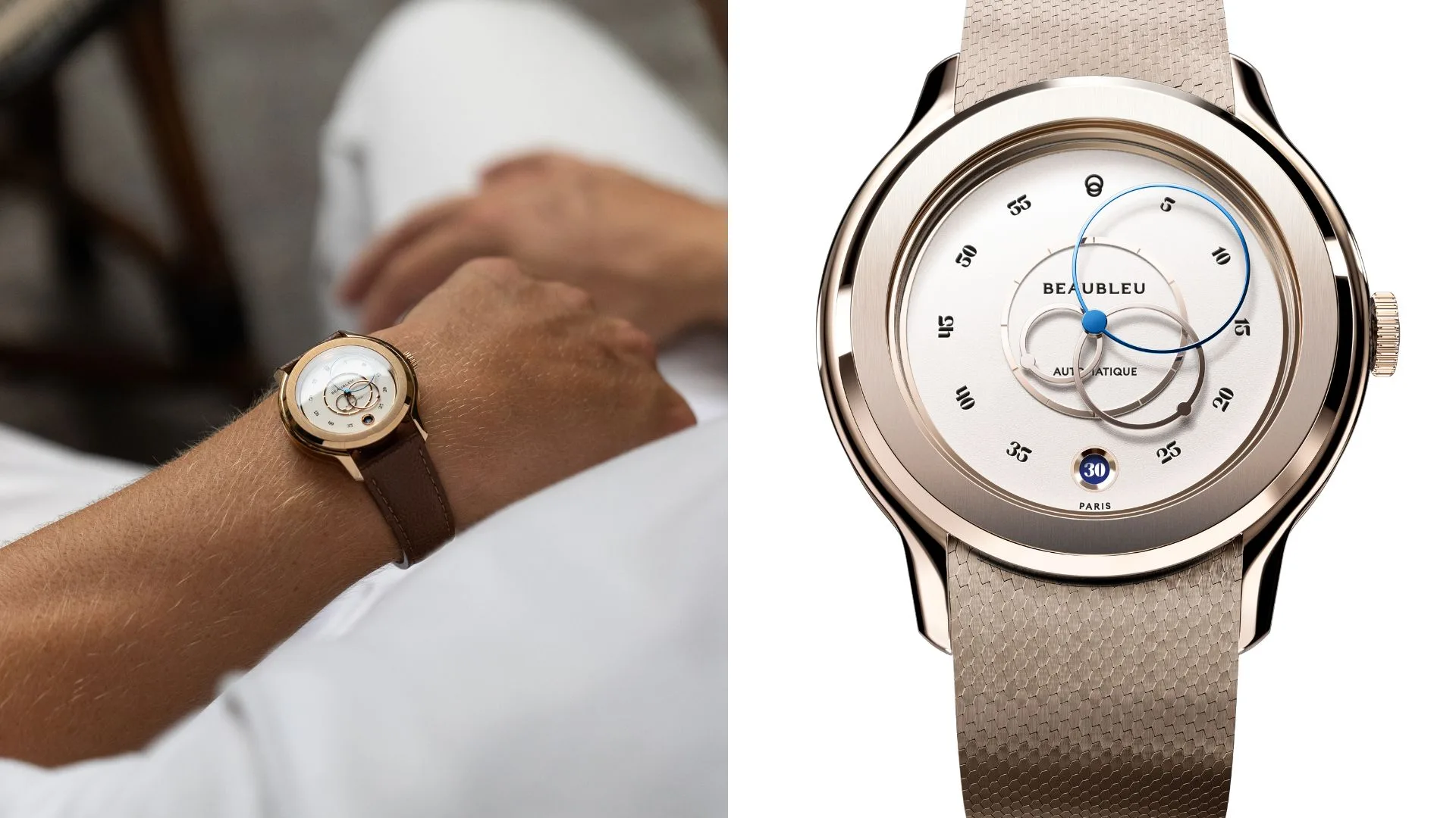 Featuring Beaubleu’s signature elements, Ecce breaks from the usual style rules, offering a versatile look for any occasion. As a kickoff to the permanent collection, Ecce introduces three artistically designed dials that blend tradition with modernity, accented by a unique flair. Each watch is crafted to highlight individual personalities. The sculpted case showcases Beaubleu’s signature rounded hands, all contributing to the house ’s ongoing pursuit of clean essential design.